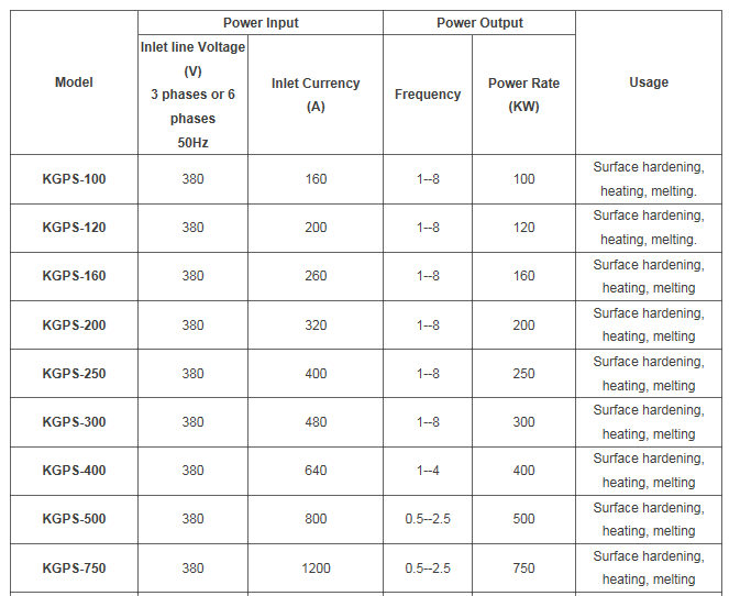 5.KGPS Induction melting Furnace Power Supply Technology Specifications: